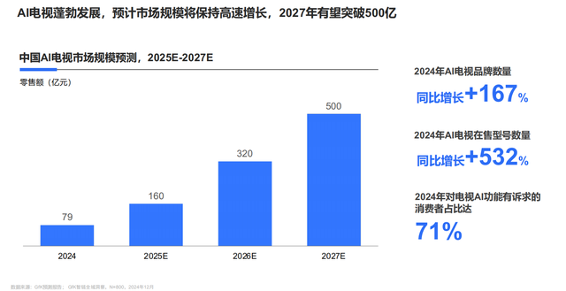 《AI TV消费趋势指南》指出,AI电视市场正处于高速发展阶段,预计到2027年市场规模将突破500亿元。AI芯片与大模型的赋能,正推动AI智能电视从基础语音助手向家庭智能生态核心升级。这意味着,未来的AI电视不仅仅是观看节目的工具,更是家庭智能生活的中枢设备。
